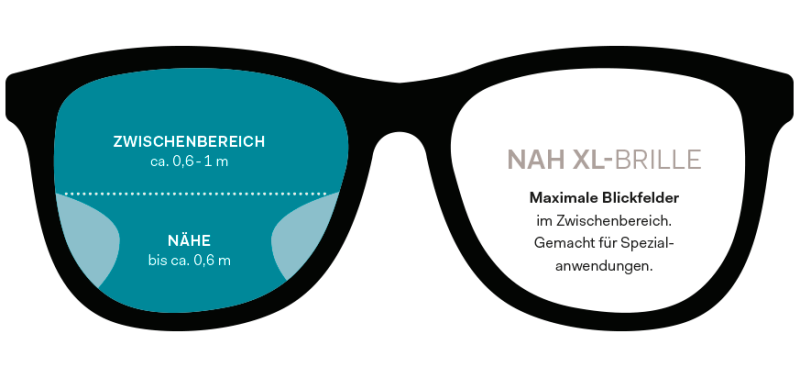 Bereich zwischen Ferne und Nähe. Warum das sinnvoll ist? Eine Nah XL-Spezialbrille