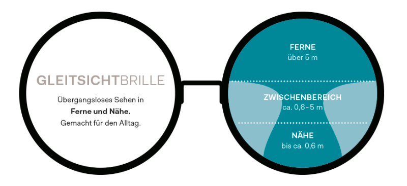 Gleitsicht ist im Zwischenbereich immer ein Kompromiss, denn es gibt physikalische Grenzen. Einen Nah- und einen Fernbereich in einem Glas zu verarbeiten hat zur Folge, dass der nutzbare Bereich für die Zwischenentfernungen enger wird.