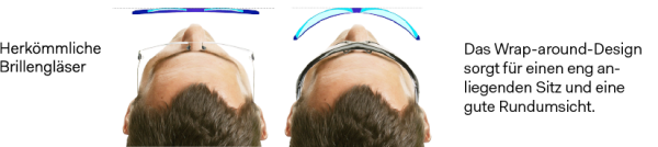 Wrap-around-Design: Speziell gecurvte Sportbrillen gewährleisten eine gute Rundumsicht – egal ob als Einstärken- oder Gleitsichtbrille.